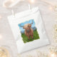 Cute Animal Parade Highland Cow Party Favour bags are perfect for your animal loving kid for his or her animal themed Highland Cow birthday party. Our animal artwork features an adorable hairy brown and tan cow with a mop of blonde hair covering one eye and huge curving horns rising up into a splatter painted blue sky. She is standing in a highland field of green with white flowers and snow topped mountains in the background. This fun hairy cow, or as the locals call them, Hairy Coos is sure to bring smiles!