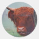 Highland Cow Biting A Wire Fence Classic Round Sticker