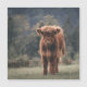 Highland cow calf autumn grass field photograph. Stunning young calf of highland Scottish cattle on an autumn grassy field with muted colours. Beautiful dark hairy orange coat contrasting with light yellow green grass and trees in bokeh in background.