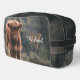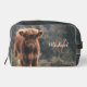 Highland cow calf autumn grass field photograph. Stunning young calf of highland scottish cattle on an autumn grassy field with muted colours. Beautiful dark hairy orange coat contrasting with light yellow green grass and trees in bokeh in background. Custom personalizable monogram with your name and inital on the left.