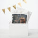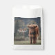 Highland cow calf autumn grass field photograph. Stunning young calf of highland scottish cattle on an autumn grassy field with muted colours. Beautiful dark hairy orange coat contrasting with light yellow green grass and trees in bokeh in background. Custom personalizable monogram with your name and inital on the left.