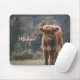 Highland cow calf autumn grass field photograph. Stunning young calf of highland scottish cattle on an autumn grassy field with muted colours. Beautiful dark hairy orange coat contrasting with light yellow green grass and trees in bokeh in background. Custom personalizable monogram with your name and inital on the left.