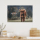 Highland cow calf autumn grass field photograph. Stunning young calf of highland scottish cattle on an autumn grassy field with muted colours. Beautiful dark hairy orange coat contrasting with light yellow green grass and trees in bokeh in background. Custom personalizable monogram with your name and inital on the left.