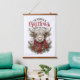 Highland Cow Christmas Art – Rustic Farmhouse Holiday Greeting with Poinsettias & Plaid Wood Topped Wall Tapestry