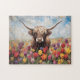 Highland Cow Colourful Tulips Painting Jigsaw Puzzle