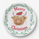 Highland Cow Hat Thistle Wreath Merry Christmas Paper Plate