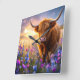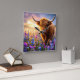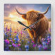 Highland Cow in a field of colourful flowers Square Wall Clock
