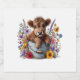 Highland Cow in Flower Bucket Png, Cute Sparkling Wine Label
