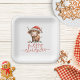 Highland Cow in Santa Hat Merry Christmas Paper Plate