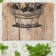 Whimsical highland cow in a bucket with flowers illustration on a woodgrain background is a super cute addition to any kitchen with that rustic or farmhouse feel.