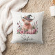A highland cow is wearing a witch's hat with pink flowers and a pumpkin. Halloween Throw Pillow. Make this day special and celebrate it with your family and wish them a happy Halloween. fall autumn vibes, we can personalize your name