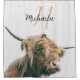 Highland cow portrait custom name initial monogram. Portrait photograph of a majestic orange brown highland cattle on a foggy day with white background.