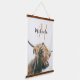 Highland cow portrait custom name initial monogram. Portrait photograph of a majestic orange brown highland cattle on a foggy day with white background.