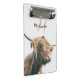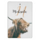 Highland cow portrait custom name initial monogram. Portrait photograph of a majestic orange brown highland cattle on a foggy day with white background.