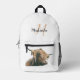 Highland cow portrait custom name initial monogram printed backpack