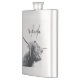 Highland cow portrait initial monogram black white hip flask