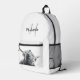 Highland cow portrait custom name initial monogram in black and white. Portrait photograph of a majestic highland cattle on a foggy day with white background in black and white.