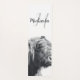 Highland cow portrait custom name initial monogram in black and white. Portrait photograph of a majestic highland cattle on a foggy day with white background in black and white.