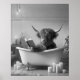 Highland Cow Reading Bath Black and White Bathroom Poster