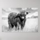 Highland cow tongue lick black and white poster