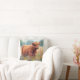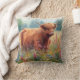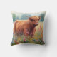 Highland Cow Watercolor Wildflower Field Throw Pillow