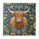 Highland Cow William Morris style Yellow Sunflower Tile
