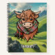 Highland Cow with Stewart Royal Tartan Scarf Notebook