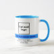 Emphasize your business name. Highlight it. Light blue combo mug that you can customize to put your business name with highlight. Customizable mug that you can use in your coffee shop, diner or restaurant business to build brand name awareness while your customers enjoy sipping the aromatic and tasty coffee or tea that you served to them. Mug as promotional product, giveaway item or gift to your customers or clients, a marketing strategy to advertise your business or to promote your brand. To customize this mug, upload your business logo, type your business name, address and phone number. Please check the appearance on front and back sides after uploading logo and typing texts. If the appearance is pleasing to you, you can place your order now. If you need to resize and move the logo and texts to fit on this mug or on the size and style that you will choose, please change in the design tool. You can also make other changes according to your preference in the design tool such as changing the highlight colour, font colour and font style.