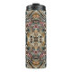 A water bottle that is highly decorated with art deco design.