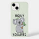 Highly Koalafied - Highly Qualified. A cute grey Koala cartoon graphic drawing with a koala bear pun. Funny and sweet wild animal design. Australian wild baby animal on a eucalyptus tree with gum leaves
