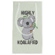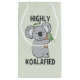 Highly Koalafied - Highly Qualified. A cute gray Koala cartoon graphic drawing with a koala bear pun. Funny and sweet wild animal design. Australian wild baby animal on a eucalyptus tree with gum leaves