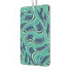 Bold, graphic design, displays swirling lines, that criss-cross, in bright colours of, teal-green, midnight-blue, black, and white-resembling, highway roads.