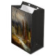 This design features a watercolor painting by the German artist Andreas Achenbach (1815–1910), who was associated with the Romantic movement and the Düsseldorf School of art. It shows a lone male figure who is hiking deep in the wilderness of a remote German woodland. The hiker is standing beside a river that is raging with fast-moving water. The sky is ominous with dark clouds, suggesting that a storm may soon be coming. The image celebrates the smallness of one man striving against the forces of nature. The original artwork was painted by Andreas Achenbach in 1841.