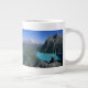 Hiker overlooking turquoise-coloured Lake Large Coffee Mug