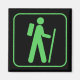 Black magnet with a green hiking symbol.