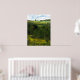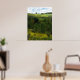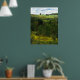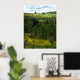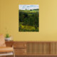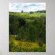 A little house is perched way up in the rolling hills of upstate New York. The view from the hilltop is lovely. Fields of goldenrod, illuminated by the sun, are accented by evergreen trees resulting in horizontal alternating layers of golden yellow and shades of green. Fluffy clouds have moved in on the blue sky. Hang this poster on your wall and pretend it is a window!