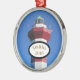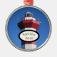 Cet ornement est orné d'un phare rouge et blanc classique de Harbour Town, sur l'île de Hilton Head en Caroline du Sud, un temple pour les plaisanciers et les golfeurs. Personnaliser avec un nom court ou des initiales, ici en or.