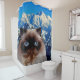 Cute animals, pets, cats. Himalayan cat with blue eyes, Himalaya mountain and Mount Everest.