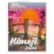 Himeji Japan blossom poster. beautiful pink Japanese cartoon travel poster.