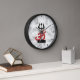 The size of the clock is dramatic and the abstract alcohol ink design is soothing and intricate at the same time. I chose the black frame that adds pop to the blue and gold design. The gold printing would be better in a slightly darker or larger font. I love it and I’m looking for just the right place in ny new apartment. I would recommend this clock for a personal gift or a present. I feel that the quality is excellent for the money! I’m a bit of a clock nut so I’m pretty particular about my purchases. The clock is larger in diameter than many if the clocks I have, so it stands out very well. I think a slightly darker printing color and a moderately larger size would best suit a professional decor or add more impact in a work place item.