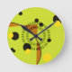 Hip Green and Black Geometric Circles Pattern Round Clock