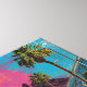 Contemporary street art celebrating Los Angeles hip-hop culture with breakdancer silhouette against city skyline. Features prominent 'HIP HOP' text, vintage boombox graphics, palm trees, and downtown LA buildings silhouetted against a large yellow sun. Combines graffiti aesthetics with retro 80s and 90s urban culture imagery in bold pink, blue, and yellow colour palette.