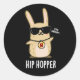 Hip Hopper Funny Bunny Rabbit Pun Dark BG Classic Round Sticker