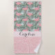 Enjoy total comfort at the beach or sitting poolside, and cool and dry off with this fun, colourful and comfy beach towel. Stand out in the sand with this beautiful contemporary pastel pink flamingos on green palm leafs on light aqua turquoise and pale blue watercolor paint brush strokes pattern. With room to customize or personalize with name, monogram or initials of your choice. Ornate, funky, modern and whimsical design for the artistic fashionista or artsy fashion diva, hip trendsetter, vintage retro watercolor painting art style or abstract motif lover.