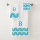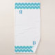 Beautiful chic contemporary retro-chic midcentury modern classic azure blue, lavender violet and turquoise green abstract geometric waves pattern. With room to customize or personalize with monogram or initials of your choice. Ornate, whimsical and funky cool design available on a variety of fun, classy and fashionable matching bathroom and decorative powder room interior décor accents and accessories, and cute modern beach essentials for the trend-savvy and art-loving hip trendsetter, vintage retro look style or abstract geometric motif lover.