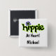 Hippie at Heart Black Lime Green Art Name Badge 2 Inch Square Button