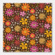 This is cute hippie psychedelic groovy 70s flowers pattern with surreal eyes in orange, red, pink with little green leaves on dark background.