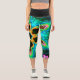 Ces leggings psychédéliques présentent un motif kaléidoscope asymétrique orange, bleu et noir brillant.