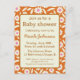 This is custom personalized retro baby shower invitation featuring white daisy flowers on orange background. It's perfect invitation for retro groovy themed baby shower parties. It contains all the details you need for your baby shower party.
