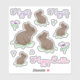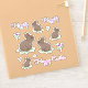 Enjoy these cute stickers featuring realistically painted bunnies with pink noses sitting in a patch of clover, little purple and yellow white pansy flowers along with purple and pink script text which reads "Hippity Hoppity Happy Easter".